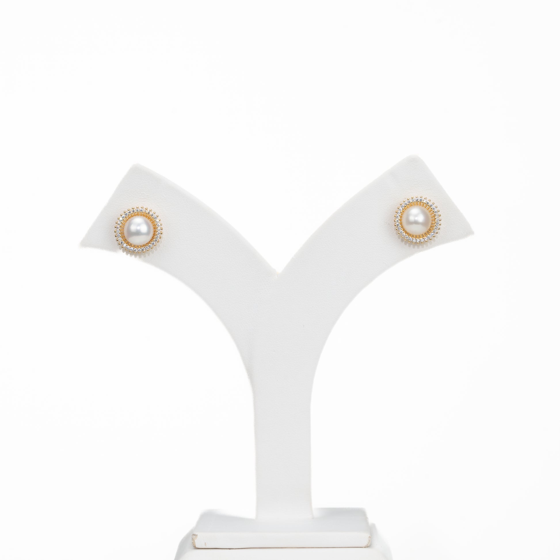 Exceptional White Stone Freshwater Pearl Stud Earrings