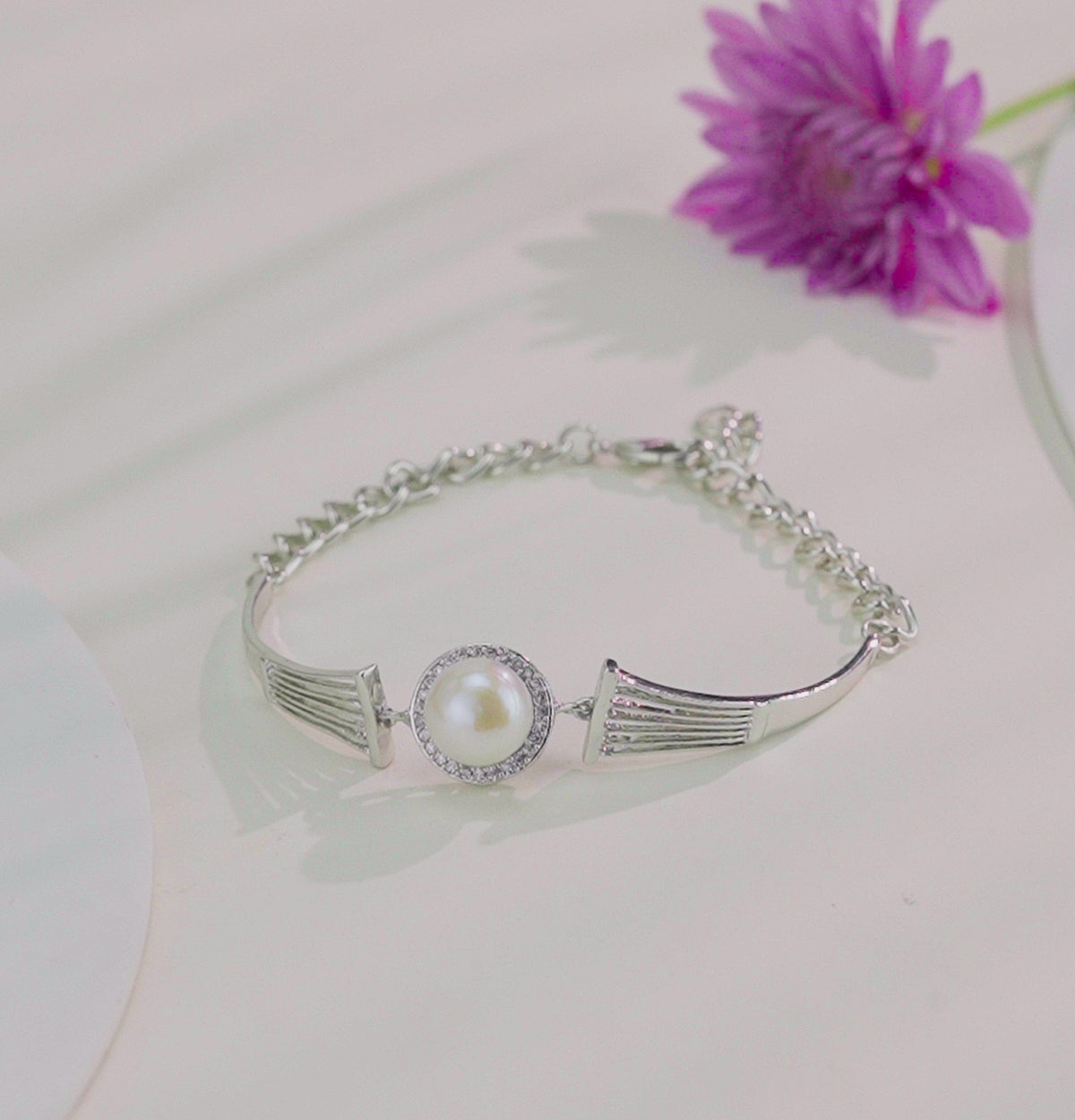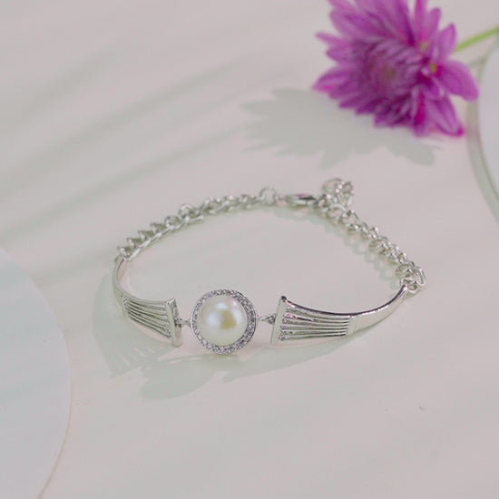 This stunning bracelet showcases freshwater cultured pearls in a soft, elegant White hue. The button-shaped pearls sized 9–10 MM are strung in a single-row design with a length of 7 inches, offering a comfortable and graceful fit. Graded A quality, these pearls radiate natural luster and beauty, making the bracelet a timeless addition to any jewelry collection. Backed by a life-long guarantee, it is an exquisite piece to complement festive attire, wedding ensembles, or even add a refined charm to your modern evening wear.