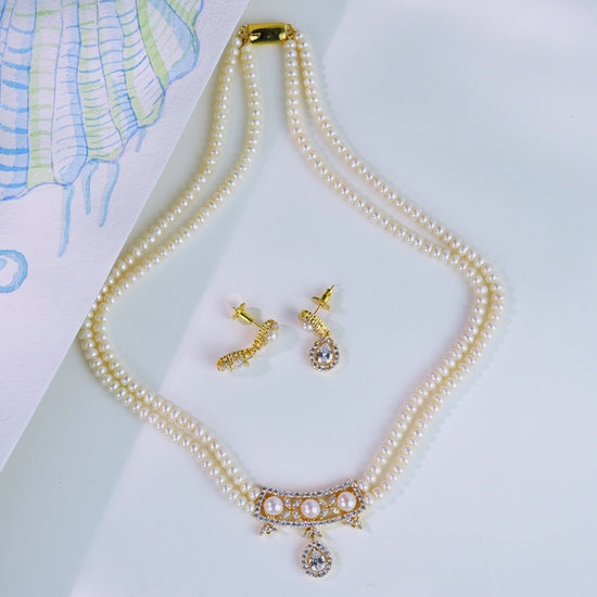 Exciting White Stone Freshwater Pearls Necklace Set