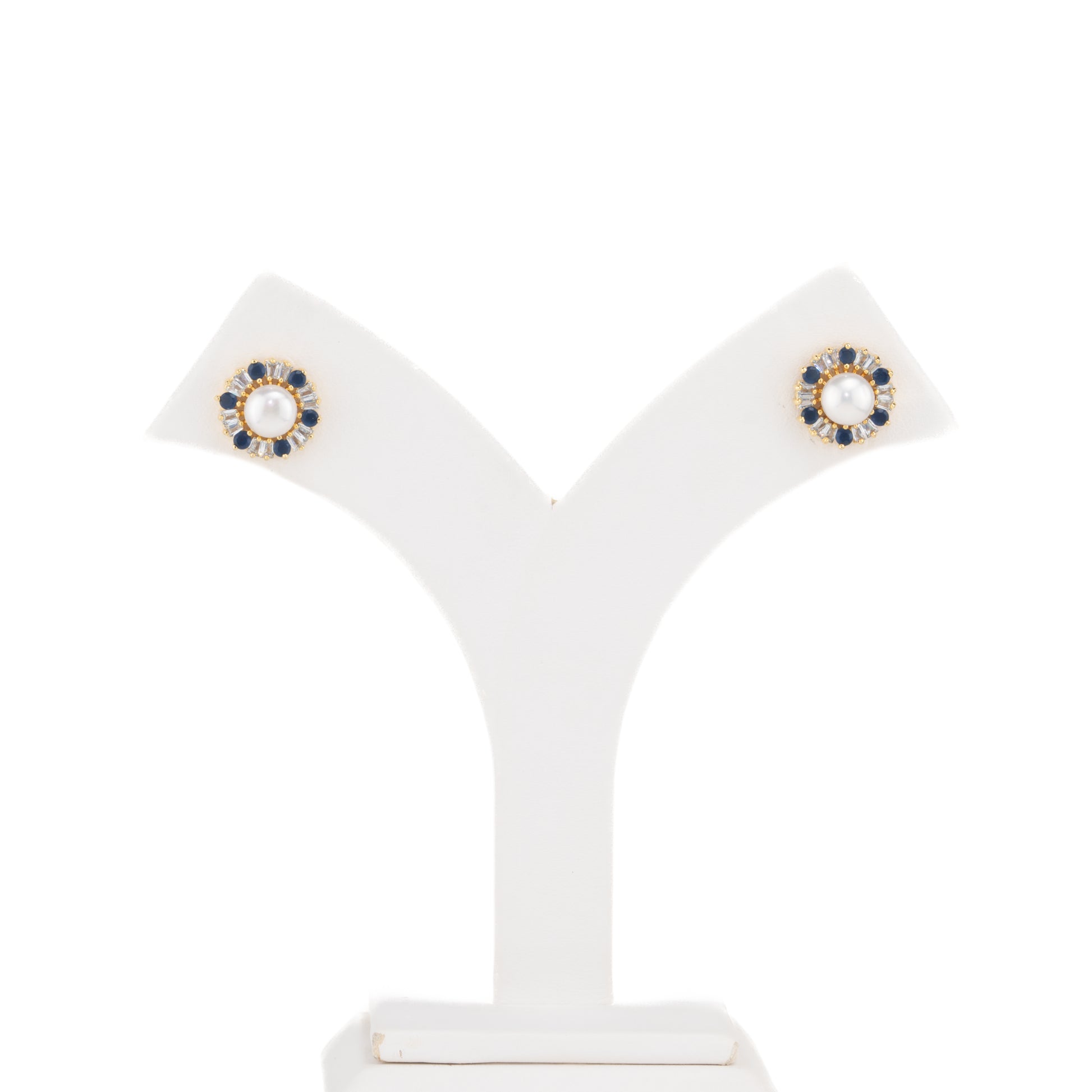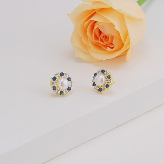 Exquisite Blue Stone Freshwater Pearl Studs Earrings