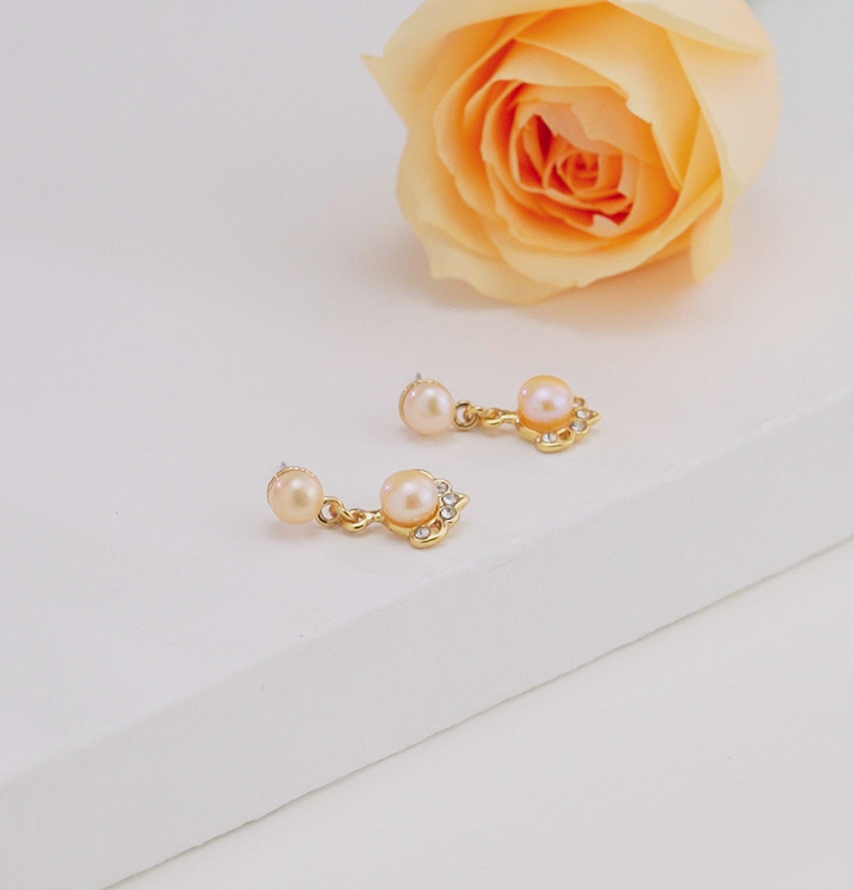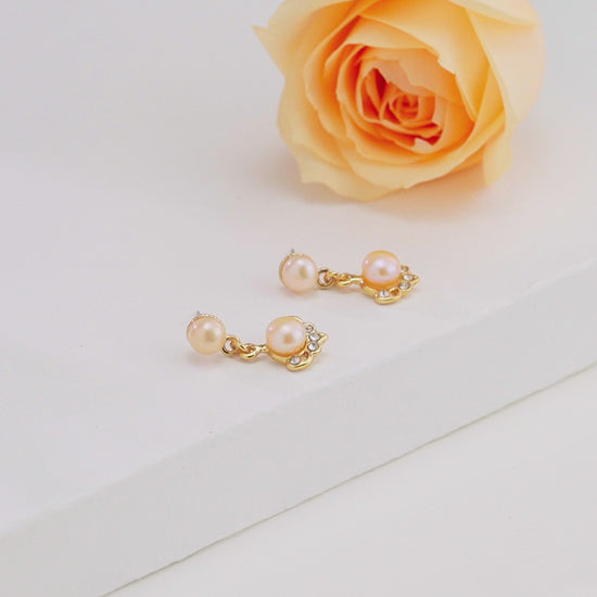Exquisite Pink Pearl Hanging Studs Earrings –