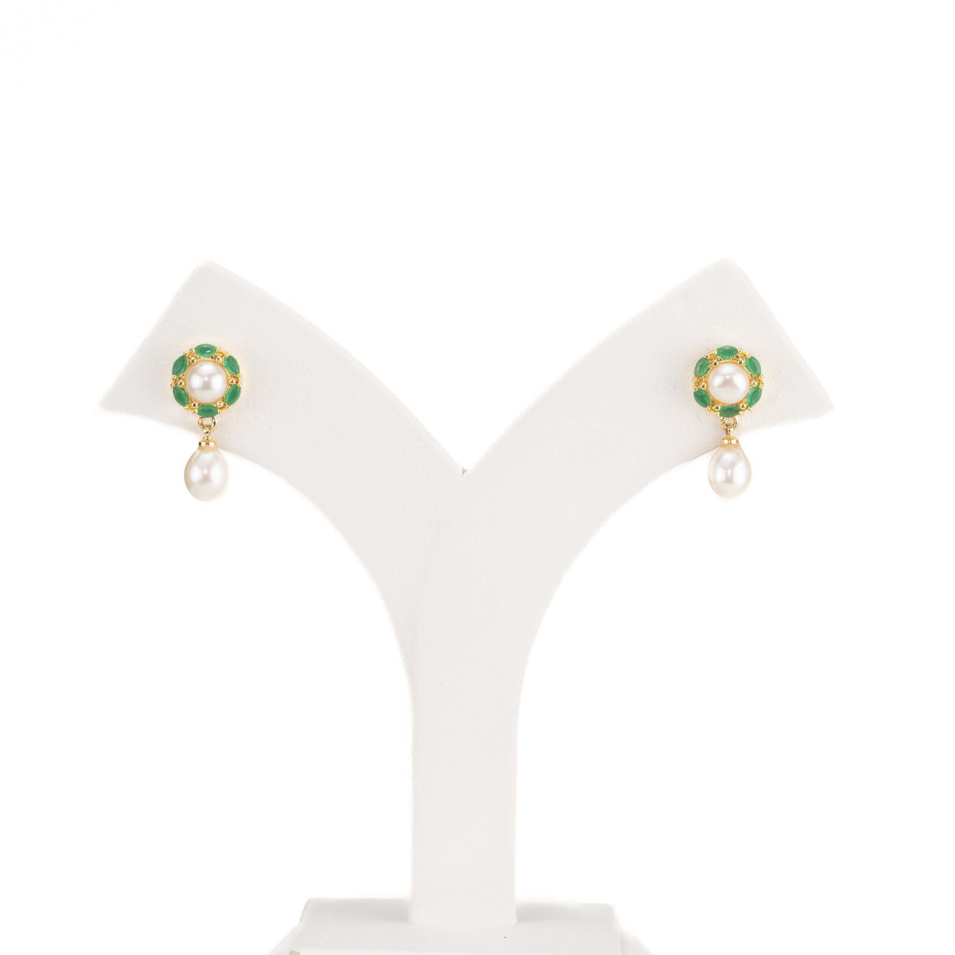 Fashionable Green Stone Freshwater Pearl Stud Earrings