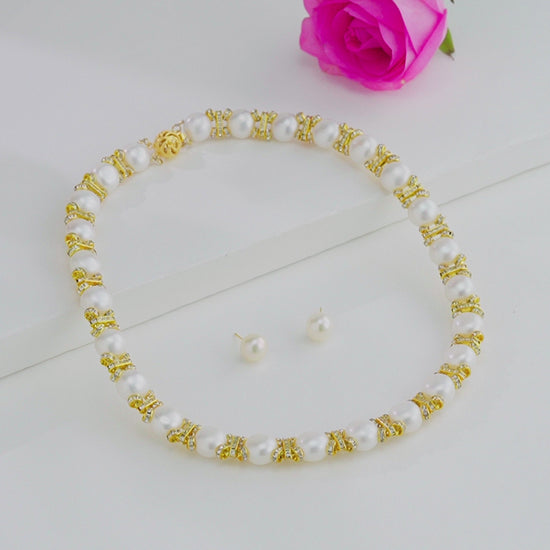 Fashionable White Stone Freshwater Pearl Choker Set