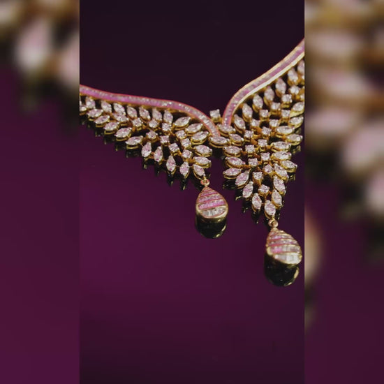 Enquire Now On WhatsAppThe Feminine Diamond Necklace is a graceful blend of elegance, charm, and timeless beauty. Designed with precision, it features delicately arranged diamonds that sparkle with brilliance, creating an enchanting aura. Its refined craftsmanship and soft curves highlight a design that is both sophisticated and romantic, making it a perfect choice for women who appreciate subtle luxury. A radiant addition to any jewelry collection, it celebrates femininity with unmatched allure. Perfect for weddings, festive celebrations, or elegant soirées, this necklace pairs beautifully with traditional attire and modern ensembles, enhancing your style with poise, grace, and sparkling brilliance.
