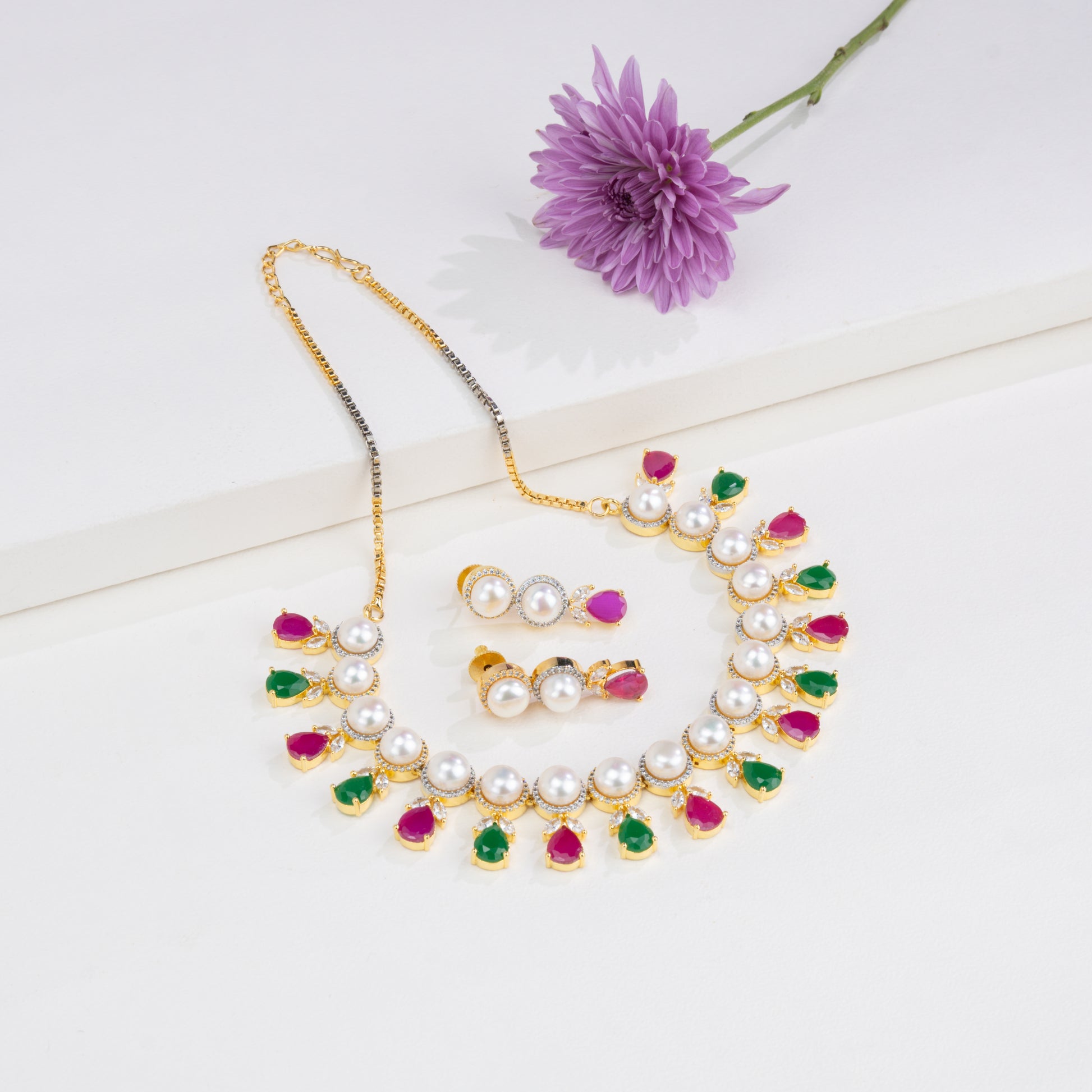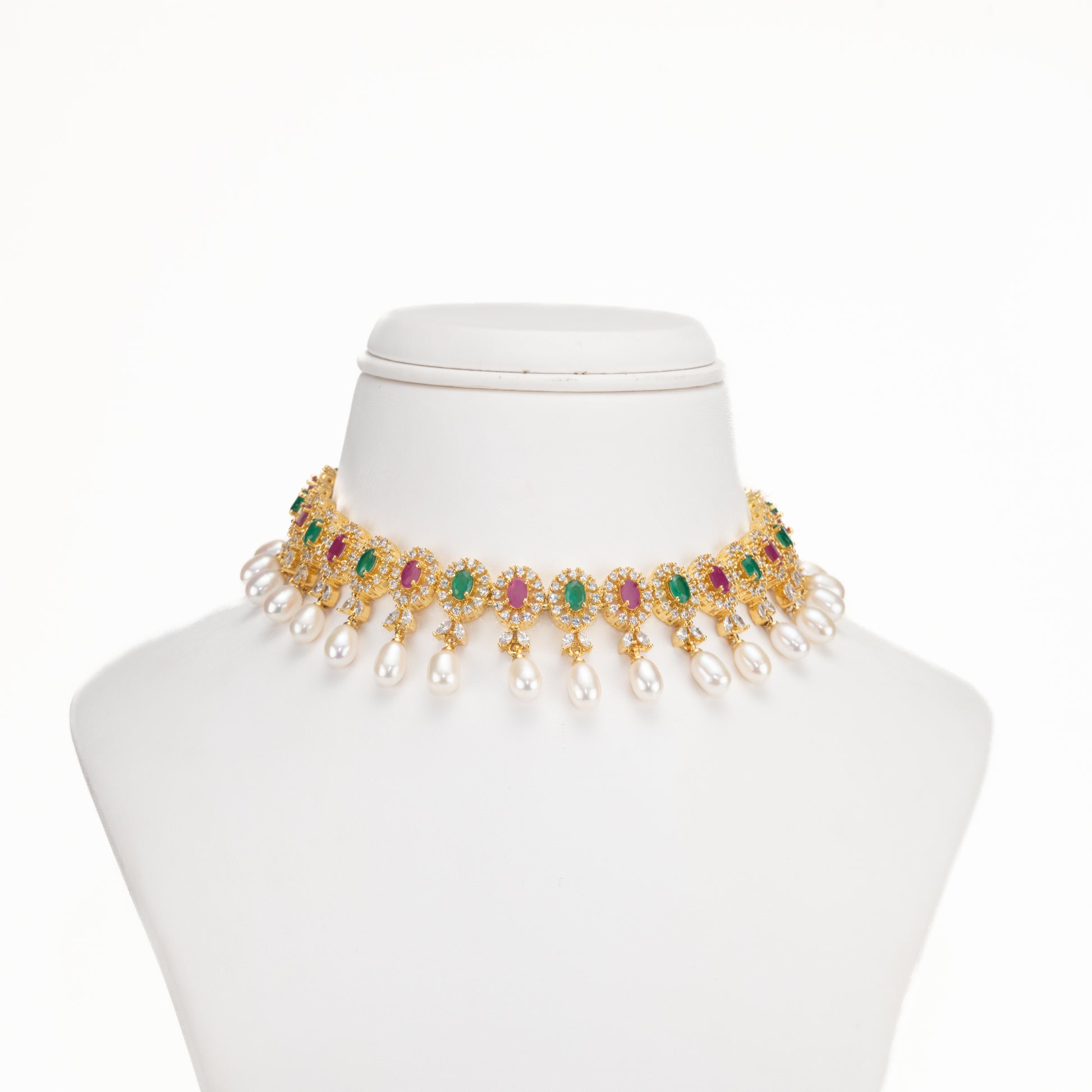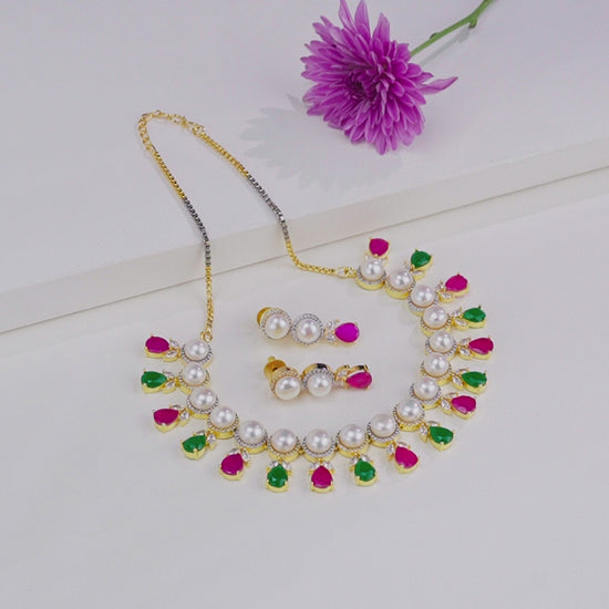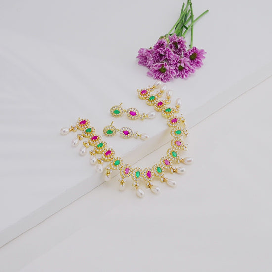 Feminine Drop Red Green Multicolor Freshwater Pearls Choker Set
