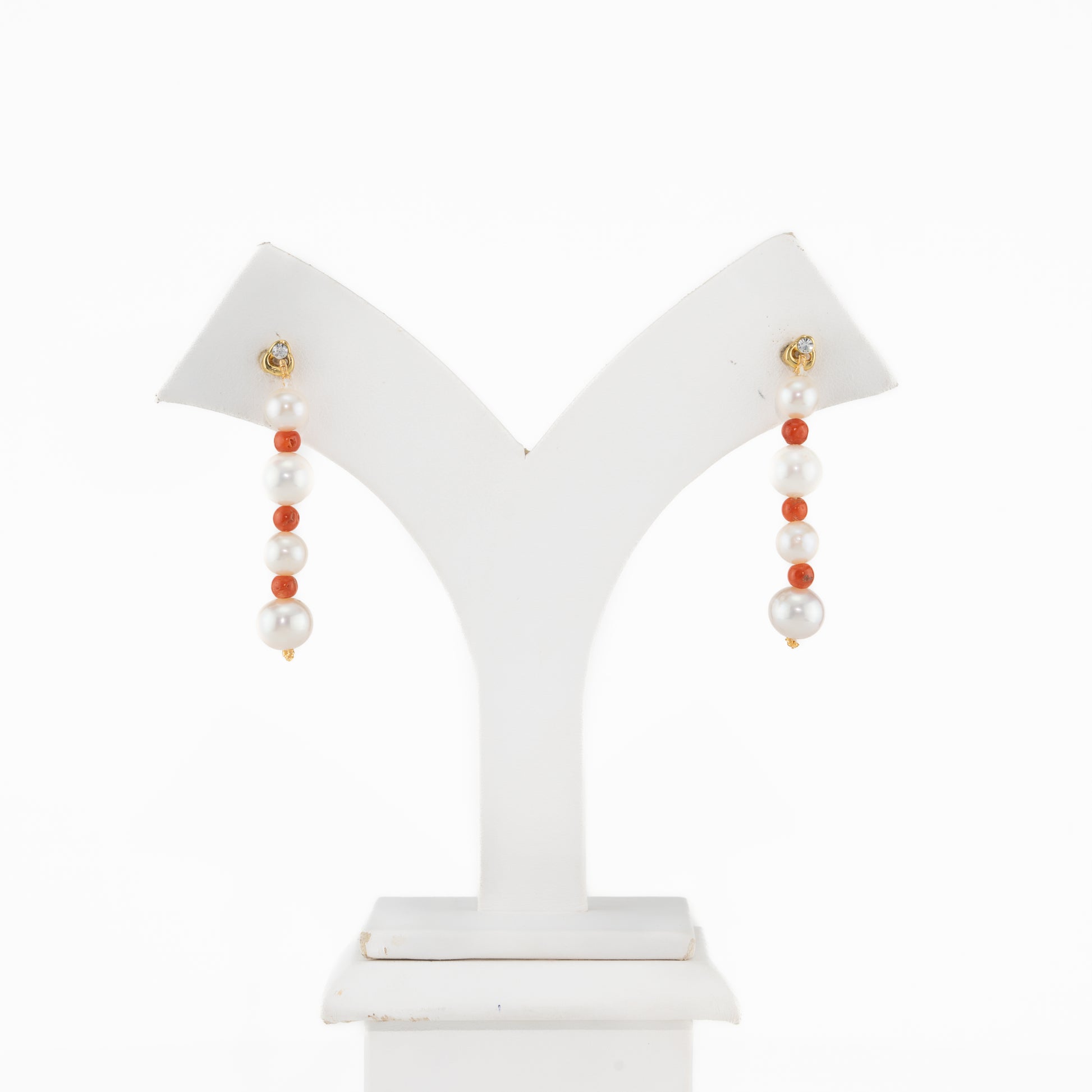 Coral Near Round Freshwater Pearl Dangling Earrings