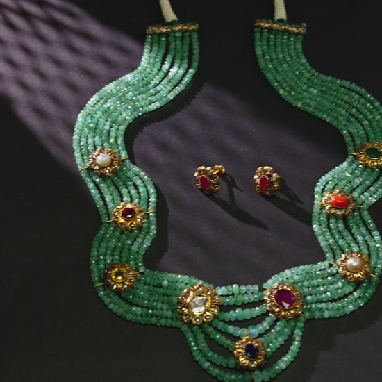 Glamorous Emerald Navratan Side Pieces Necklace