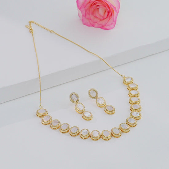 Experience timeless sophistication with this stunning choker set, crafted from white freshwater cultured pearls in a refined near-round shape (A-grade quality). The single 16-inch strand is styled in an elegant AD Mop necklace design, offering a perfect balance of simplicity and grace. Backed by a life-long guarantee on pearls, this versatile piece is ideal for weddings, festive occasions, and evening gatherings, adding an aura of elegance to both traditional and contemporary outfits.