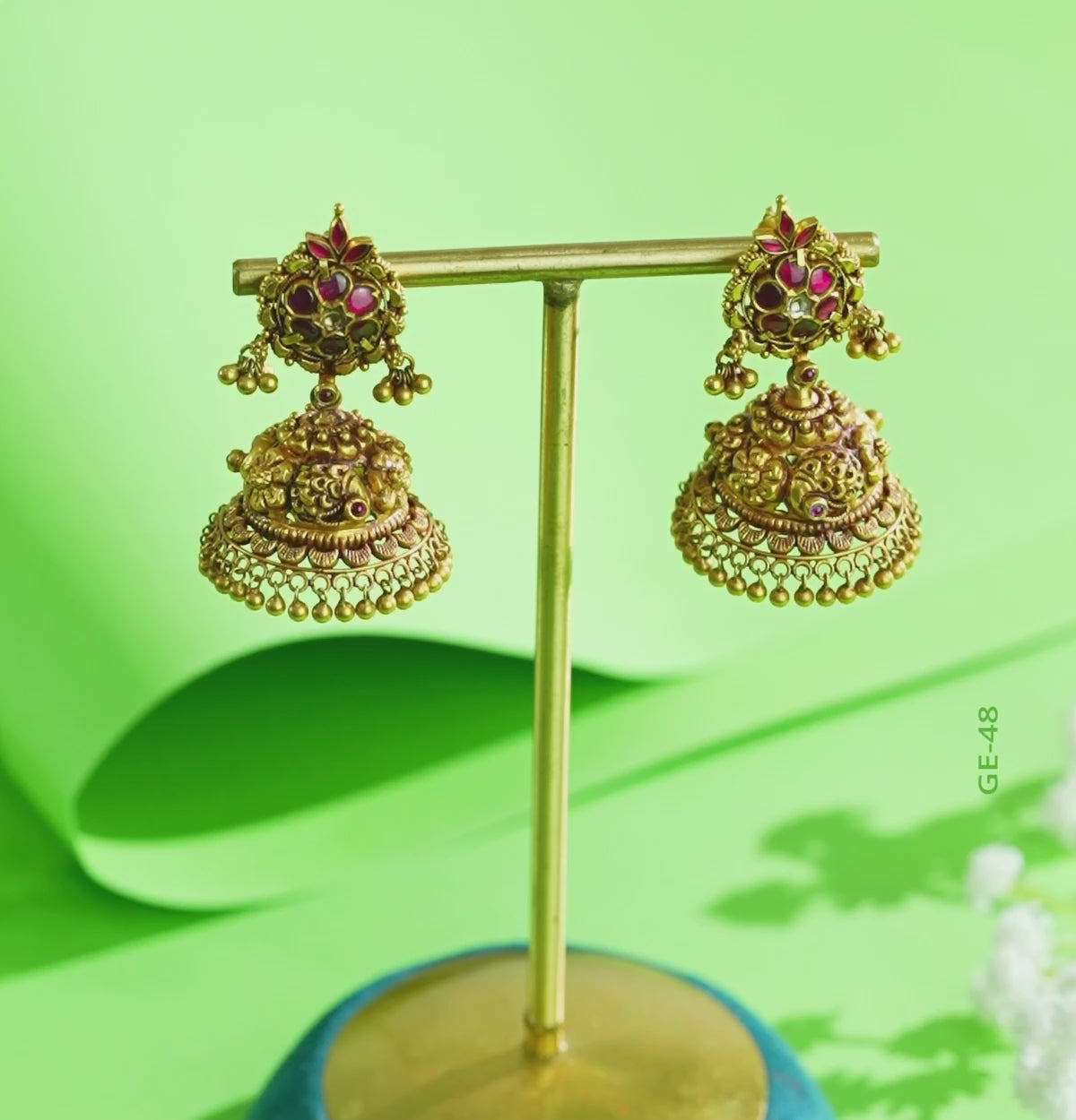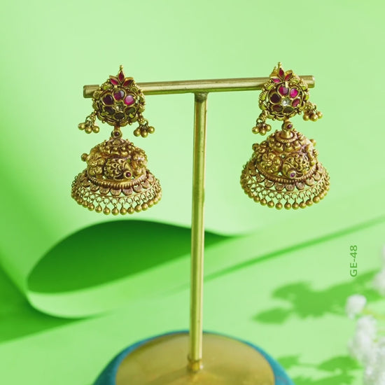Enquire Now On WhatsAppThe Glitzy Ruby Gold Earrings are a dazzling expression of elegance and charm, crafted in fine gold and embellished with radiant rubies that exude brilliance. The intricate detailing highlights their luxurious design, while the rich red hues of the rubies add a striking touch of vibrance and sophistication. A perfect fusion of tradition and modern appeal, these earrings make a stunning addition to any jewelry collection. Ideal for weddings, festive occasions, and special celebrations, they pair beautifully with sarees, lehengas, and contemporary outfits, ensuring you shine with grace, elegance, and a bold statement of timeless beauty.