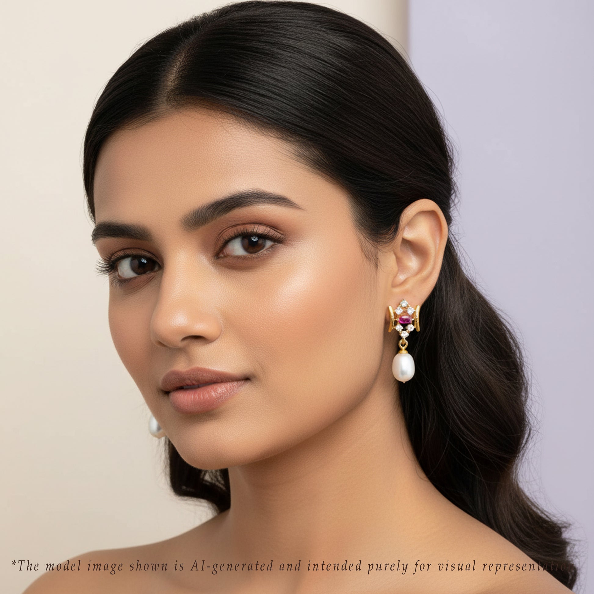 Showcase timeless elegance with these Glossy Red Stone Drop Hanging Pearl Stud Earrings, designed with 9-10MM white freshwater cultured pearls in a delicate drop shape. Crafted with A quality pearls, their natural glow harmonizes beautifully with the striking Red stones, creating a graceful and modern accessory. Backed by our Life Long Guarantee on Pearls, these earrings are ideal for festive occasions, weddings, or adding a touch of sophistication to everyday wear.