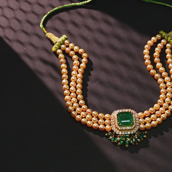 Graceful Emerald Stone Pearl Choker