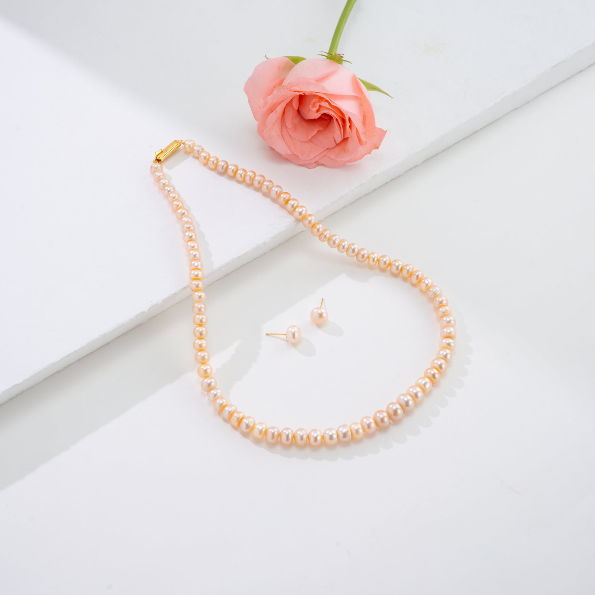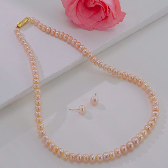 Grading Pink Button Freshwater Pearl Necklace Set - A Quality