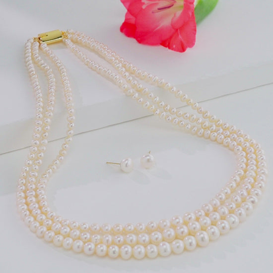 Grading White Near Round Freshwater Pearl Necklace Set - AA Quality