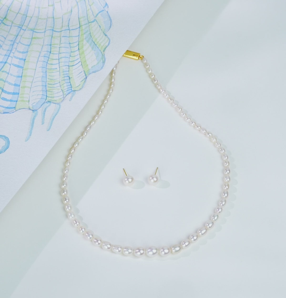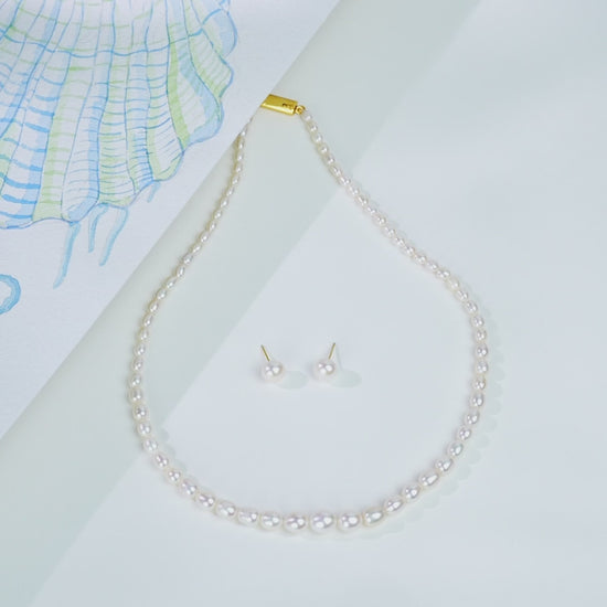 Grading White Drop Freshwater Pearl Necklace Set - AA Quality