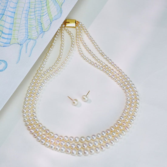 Grading White Near Round Freshwater Pearl Necklace Set - AAA Quality