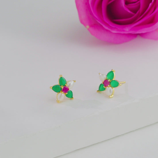 Intriguing Red Green Freshwater Pearl Stud Earrings