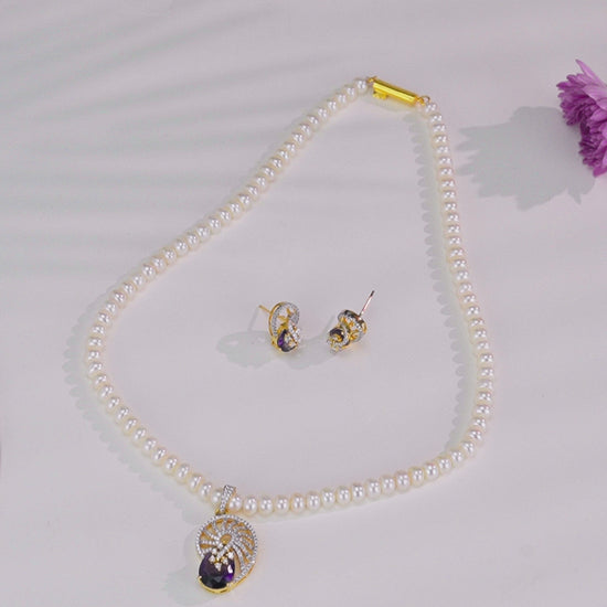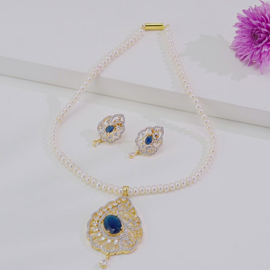 Lavish Blue Stone Freshwater Pearl Necklace Set