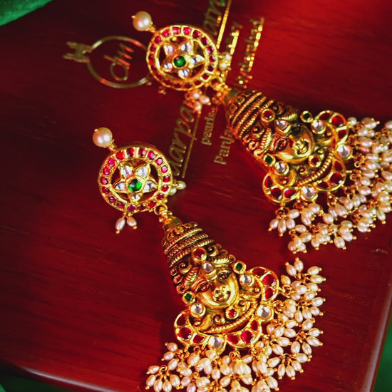 Enquire Now On WhatsAppThe Luxe Ruby Pearl Earrings are a masterpiece of elegance, blending the rich allure of rubies with the timeless grace of pearls. Expertly crafted in gold, these earrings showcase exquisite detailing that highlights their luxurious charm. The radiant rubies add a bold pop of color, while the pearls bring sophistication and balance, making them a truly captivating accessory. A symbol of grace and refinement, these earrings elevate any look with effortless style. Ideal for weddings, festive celebrations, and evening occasions, they pair beautifully with sarees, lehengas, and contemporary outfits, adding a regal touch of elegance to your attire.