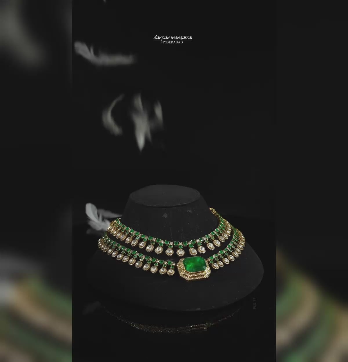 Enquire Now On WhatsAppStep into sophistication with our Modern Emerald Uncut Diamond Necklace, a perfect fusion of contemporary design and timeless elegance. Featuring vibrant emeralds and hand-selected uncut diamonds, each stone is meticulously set in a gold-toned framework that accentuates its natural brilliance. The intricate craftsmanship creates a captivating sparkle, making this necklace a standout piece in any jewelry collection. Lightweight yet striking, it ensures comfort while exuding luxury and style.