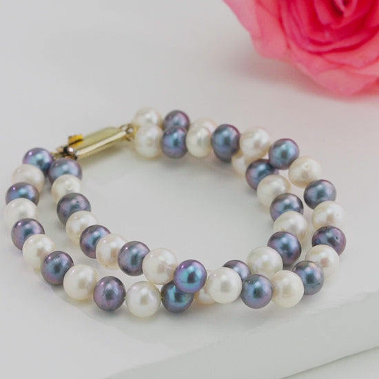 Vibrant and elegant, the Multicolor Near Round Freshwater Pearl Bracelet showcases a stunning mix of 6-7MM pearls in soft, natural hues. Crafted from genuine Freshwater Cultured Pearls and graded A for their natural beauty, this double-row design offers a unique blend of charm and sophistication. Measuring 8 inches in length, it provides a comfortable fit while making a stylish statement. Backed by a Life Long Guarantee on Pearls, it is a timeless addition to your collection. Perfect for festive occasions, casual outings, or pairing with traditional and western attire to add a lively, graceful touch.
