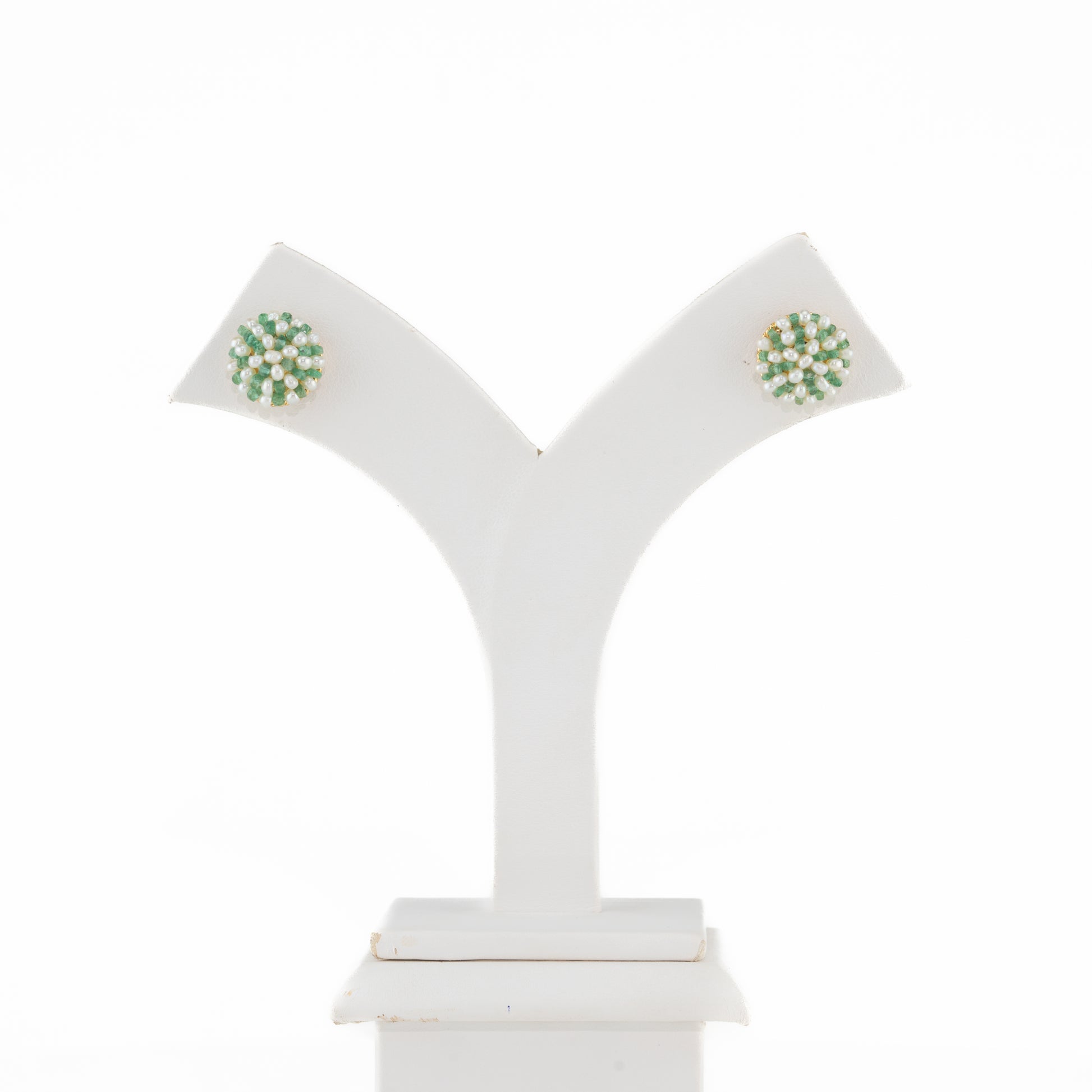 Enhance your everyday elegance with these charming stud earrings featuring Freshwater Cultured Seed Pearls in a classic white tone. The pearls measure 1-2 MM and are graded A for quality, offering a subtle yet graceful appeal. Accented with green stones, they add a refreshing pop of color to your look. These studs come with a lifelong guarantee on pearls, ensuring enduring beauty and trust. Perfect for casual outings, office wear, or small festive occasions, they complement both ethnic kurtis and modern outfits with effortless sophistication.