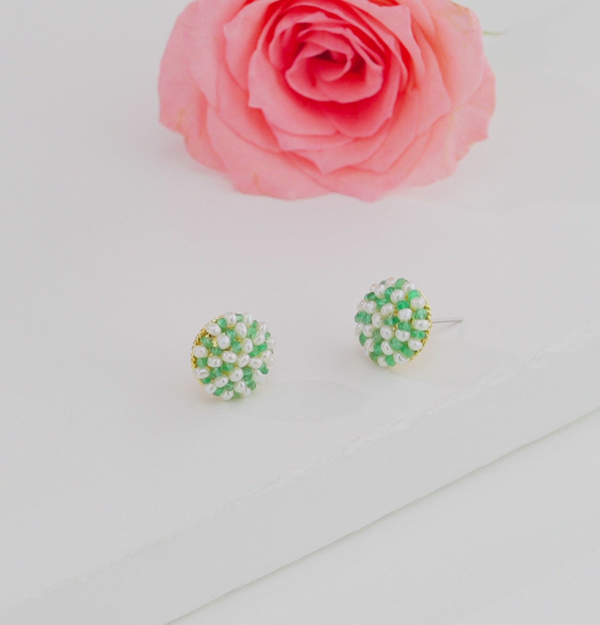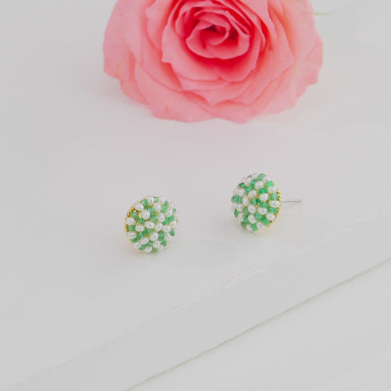Mystical Natural Emerald Seed Freshwater Pearl Stud Earrings