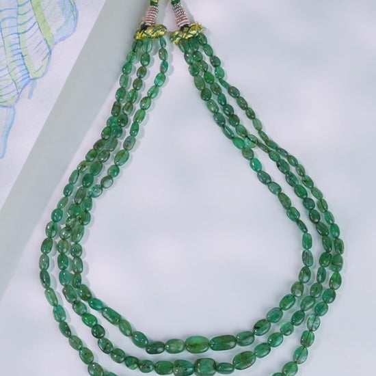 Discover natural grace with our Natural Emerald Necklace, featuring 3 rows of lush green tumble beads in AA quality. With a refined weight of approximately 248.7 carats and an elegant 18-inch length, this necklace radiates organic beauty and sophistication. Each bead is carefully selected to reflect timeless charm.
