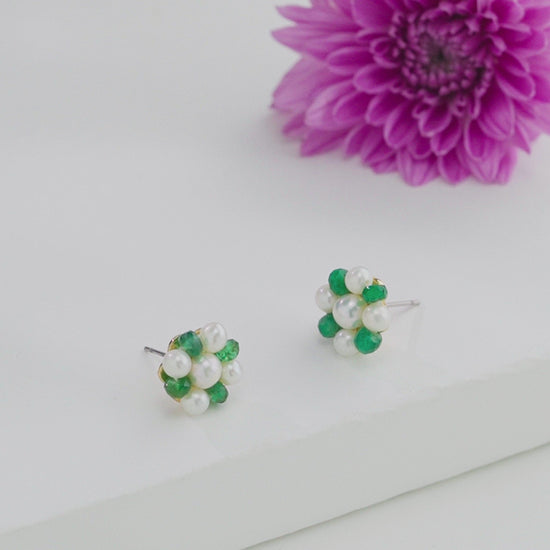 Elegant and captivating, these earrings feature Freshwater Cultured Pearls in a lustrous near-round shape measuring 3–4MM, paired with rich natural green emerald stones. Each AAA quality pearl is hand-selected for its flawless surface, exceptional luster, and uniform symmetry. The vibrant emeralds add a luxurious pop of color, perfectly complementing the pristine white pearls. Crafted with precision for durability, these earrings come with our Life Long Guarantee on Pearls, ensuring lasting beauty. Ideal for weddings, festive occasions, and formal gatherings, they also enhance everyday attire with a touch of refined sophistication and timeless elegance.