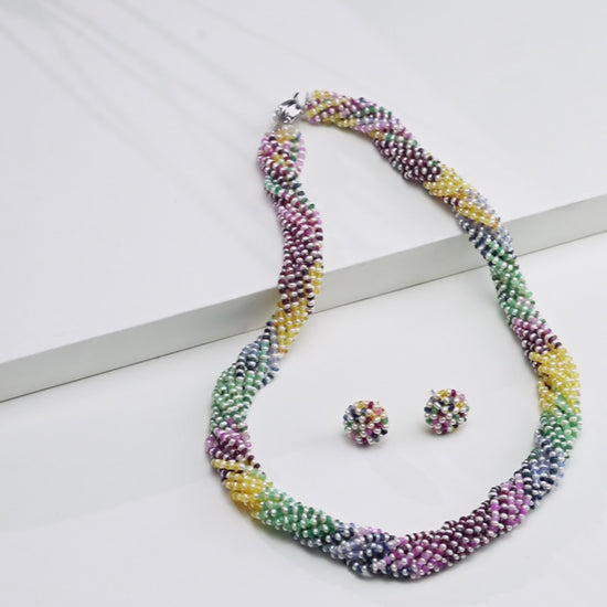 Natural Rainbow and 1.0-2.0mm Seed Freshwater Pearls Necklace Set - AAA Quality