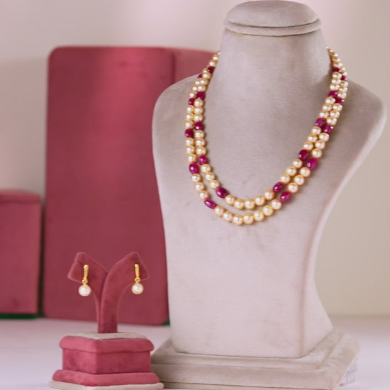 Natural Ruby Beads and 7.0-8.0mm Golden Akoya Saltwater Pearls Necklace Set - AAA Quality