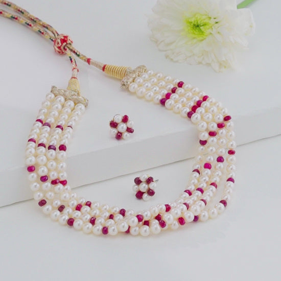 Natural Ruby Near Round Freshwater Pearl Choker Set