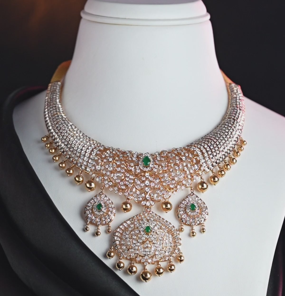 Enquire Now On WhatsAppThe Opulent Diamond Necklace is a stunning creation that embodies elegance, luxury, and timeless beauty. Meticulously crafted, it features brilliantly cut diamonds arranged in a graceful design that sparkles with every movement. Its exquisite craftsmanship and radiant shine make it a statement piece that exudes sophistication and class. Perfect for those who appreciate fine jewelry, this necklace adds an aura of grandeur to any collection. Ideal for weddings, festive occasions, or glamorous evenings, it pairs seamlessly with both traditional and contemporary attire, enhancing your presence with unmatched brilliance and making every moment truly unforgettable.