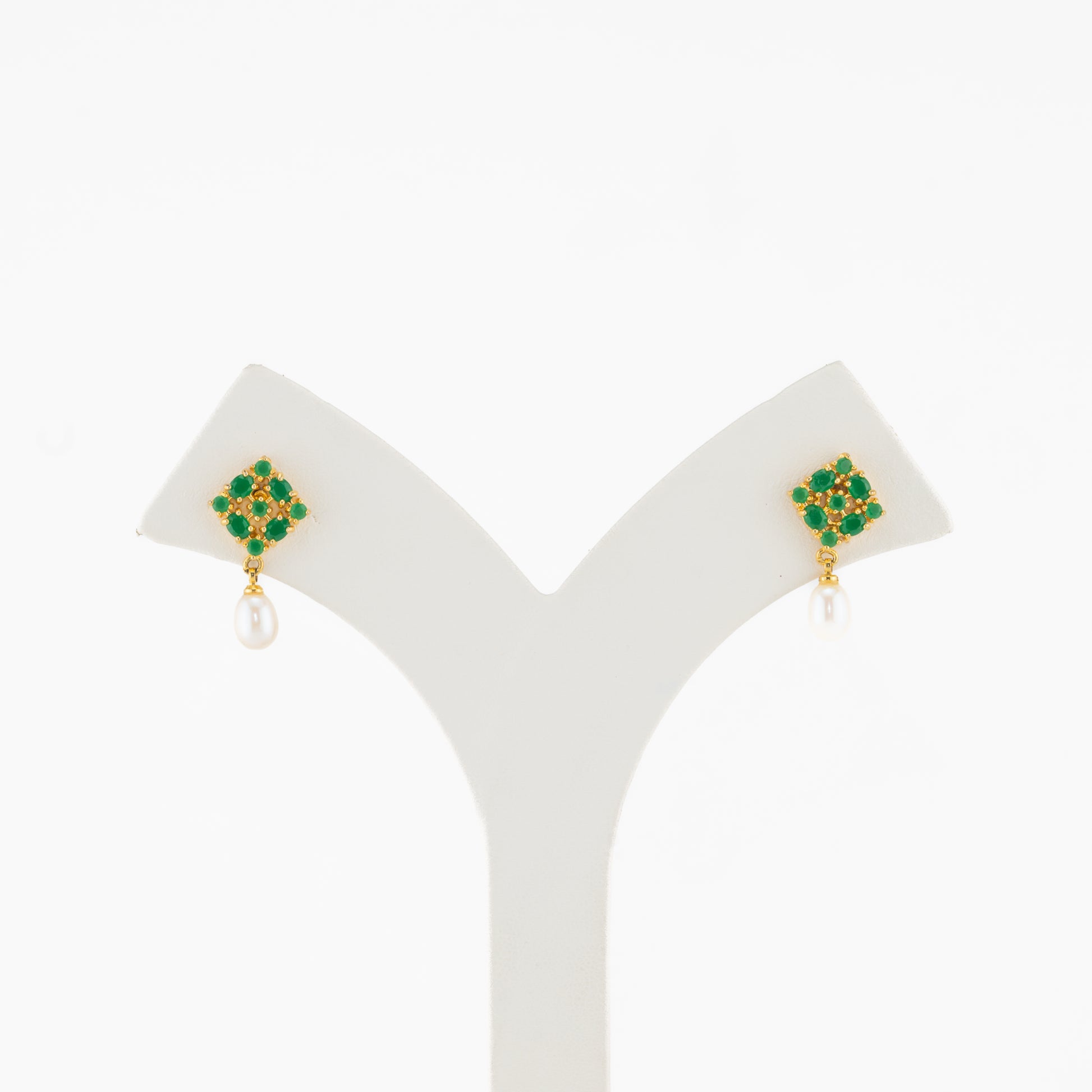 Elevate your style with these Perfect Green Stone Pearl Stud Earrings, crafted with lustrous white drop-shaped freshwater pearls sized 7-8 MM. Accented with a radiant green stone, they bring a refreshing blend of elegance and vibrance. Designed in A-grade quality and secured with a life-long guarantee on pearls, these earrings are a timeless accessory. Perfect for festive occasions, formal gatherings, or everyday sophistication, they add a graceful charm to any outfit.