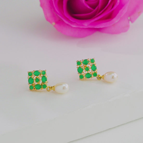 Perfect Green Stone Freshwater Pearl Stud Earrings