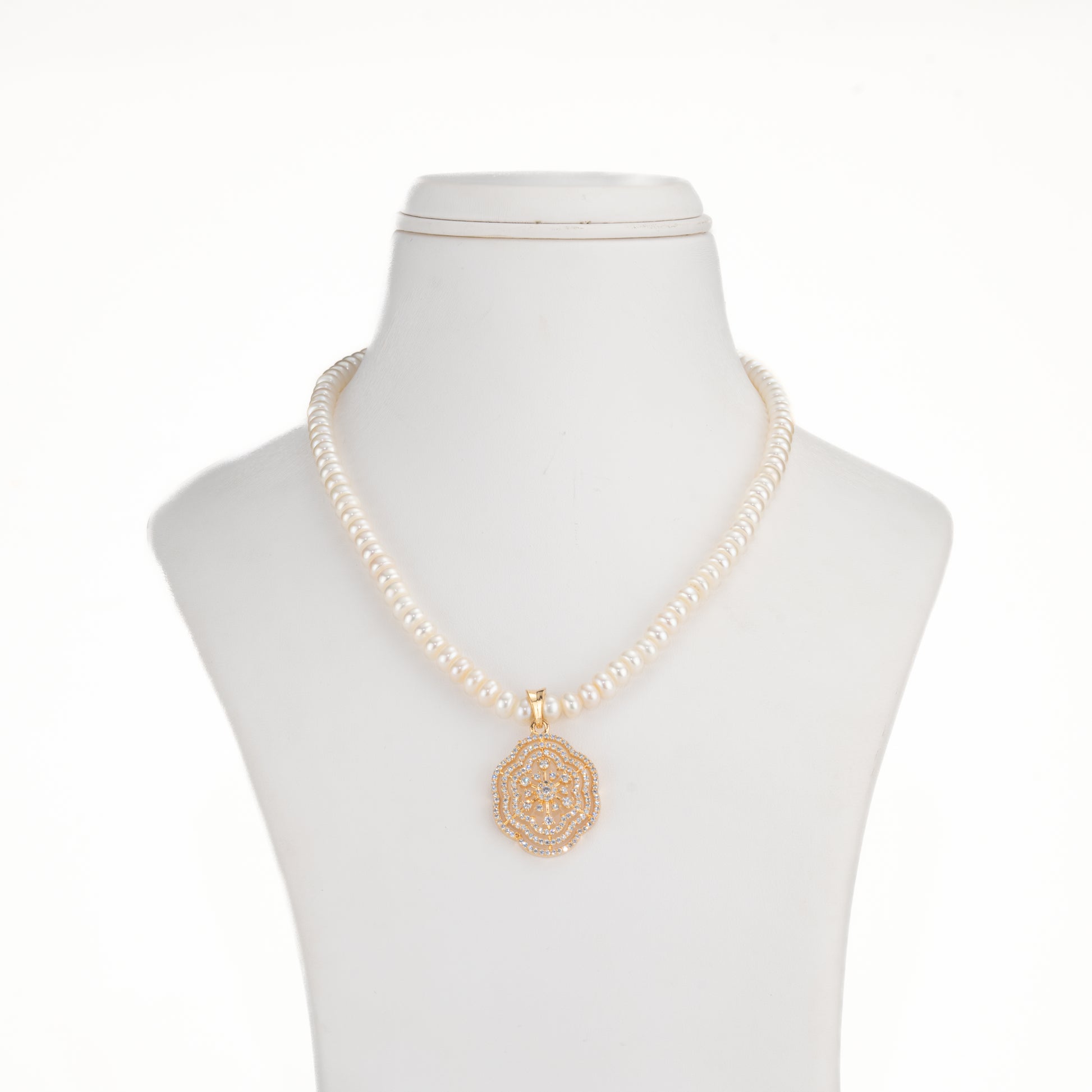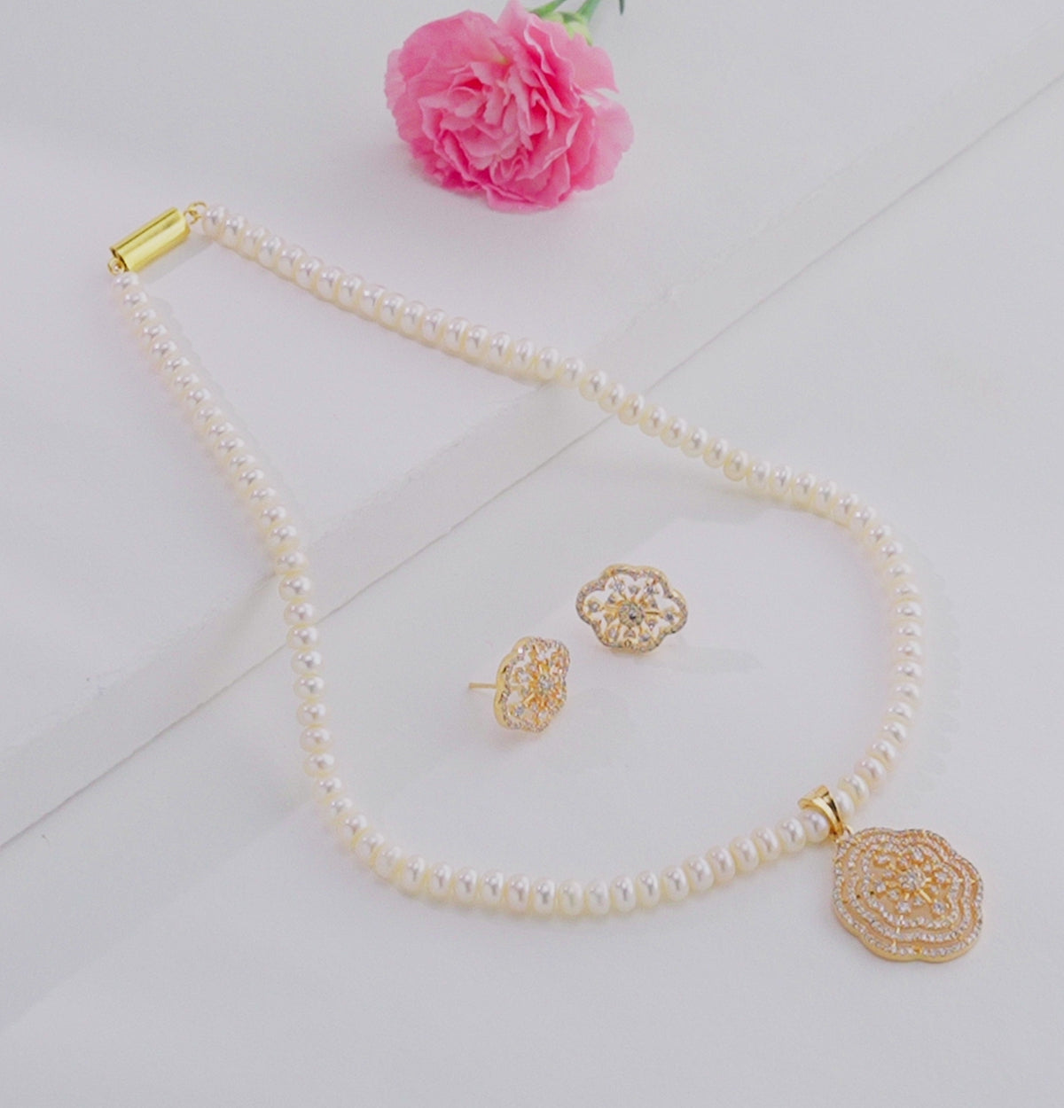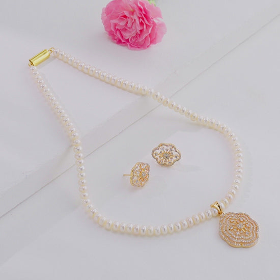 Precious White Stone Button Freshwater Pearl Necklace Set