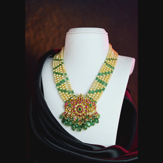 Enquire Now On WhatsAppAdorn yourself with elegance through our Precious Gold With Beads and Pearl Necklace, a captivating blend of timeless gold, delicate pearls, and artistic beadwork. Crafted with precision, this necklace reflects both heritage and sophistication. The radiant gold enhances the natural luster of pearls, while the beads add a touch of charm and uniqueness. Its intricate detailing and graceful design make it a treasured piece, symbolizing beauty and tradition in perfect harmony.