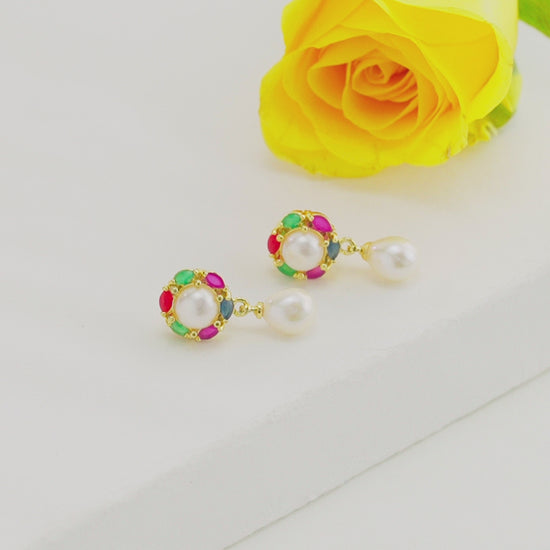 Precious Multicolor Drop Freshwater Pearl Stud Earrings