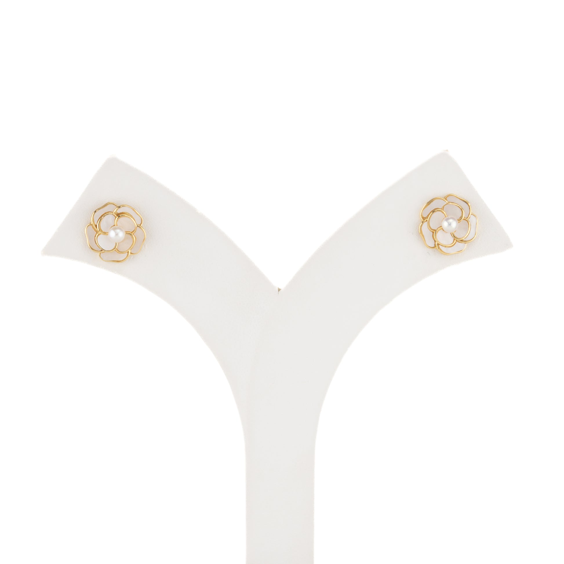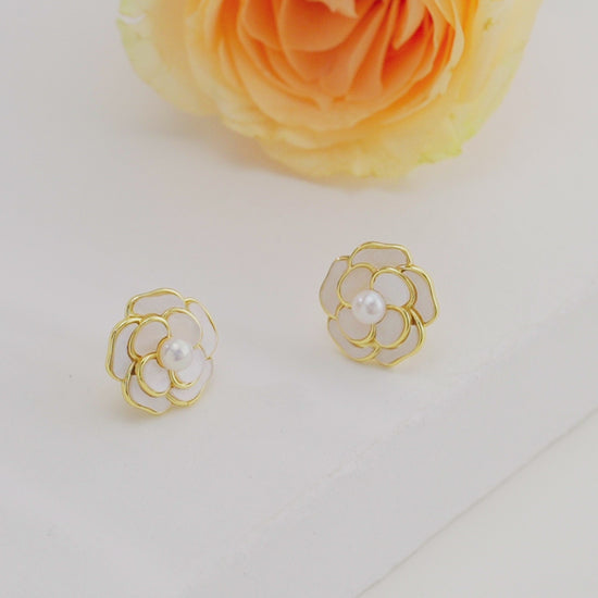 Floral White Freshwater Pearl Stud Earrings