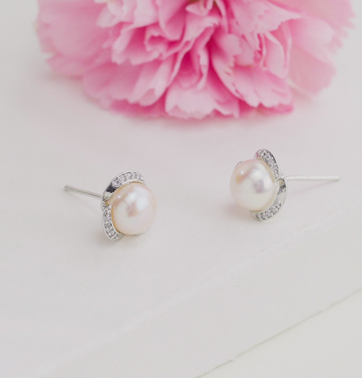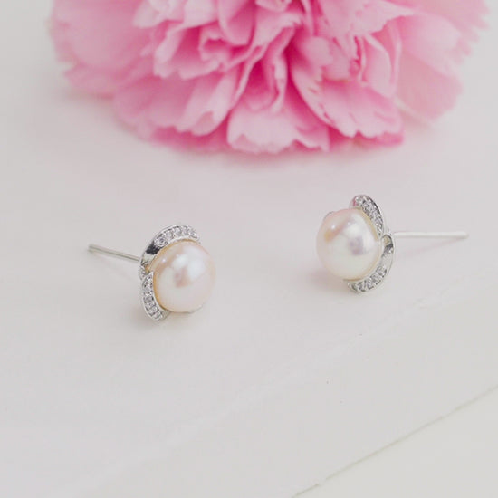 Radiance White Stone Freshwater Pearl Stud Earrings