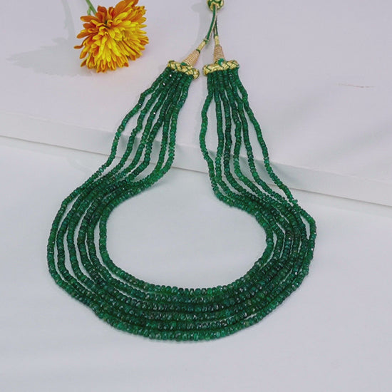 Experience timeless elegance with our Natural Emerald Necklace, meticulously crafted with faceted green emeralds of AA quality. This luxurious necklace features 6 rows of dazzling stones, totaling approximately 299.150 carats, and measures 18 inches in length for a graceful drape and rich appeal.
