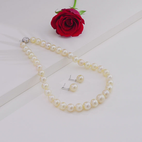 11.0-12.0mm Cream Near Round South Sea Pearl Necklace Set - A Quality