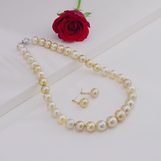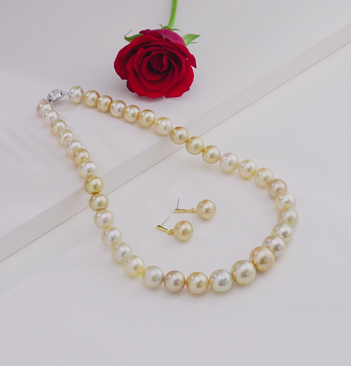 13.0-14.0mm Golden Near Round South Sea Pearl Necklace Set - AA Quality