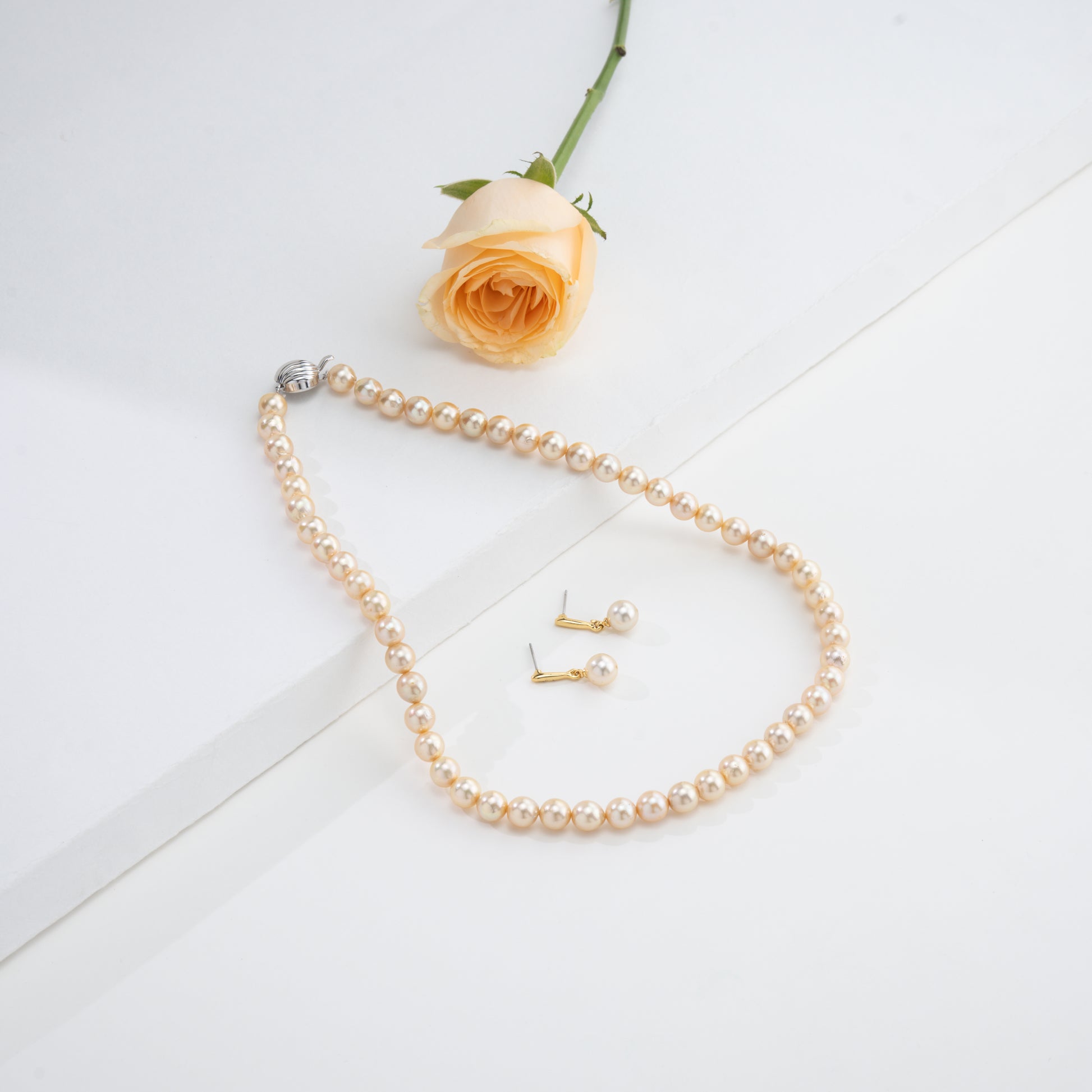7.0-8.0mm Golden Round Akoya Saltwater Pearl Necklace Set - AAA Quality