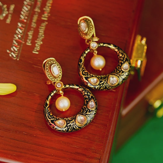 The Sparkling Kundan Earrings are a timeless blend of elegance and artistry, crafted with intricate kundan work and highlighted by a luminous pearl drop. The bold circular design, adorned with shimmering kundan stones and fine detailing, adds a regal touch to these stunning earrings. Perfectly balancing tradition and modernity, they bring sophistication and charm to any jewelry collection. Their radiant finish and graceful design make them an ideal accessory for women who appreciate refined craftsmanship. Perfect for weddings, festive gatherings, and evening parties, these earrings pair effortlessly with sarees, lehengas, and gowns, enhancing your style with elegance and brilliance.