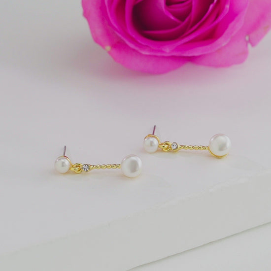 Sparkly White Freshwater Pearl Stud Hanging Earrings