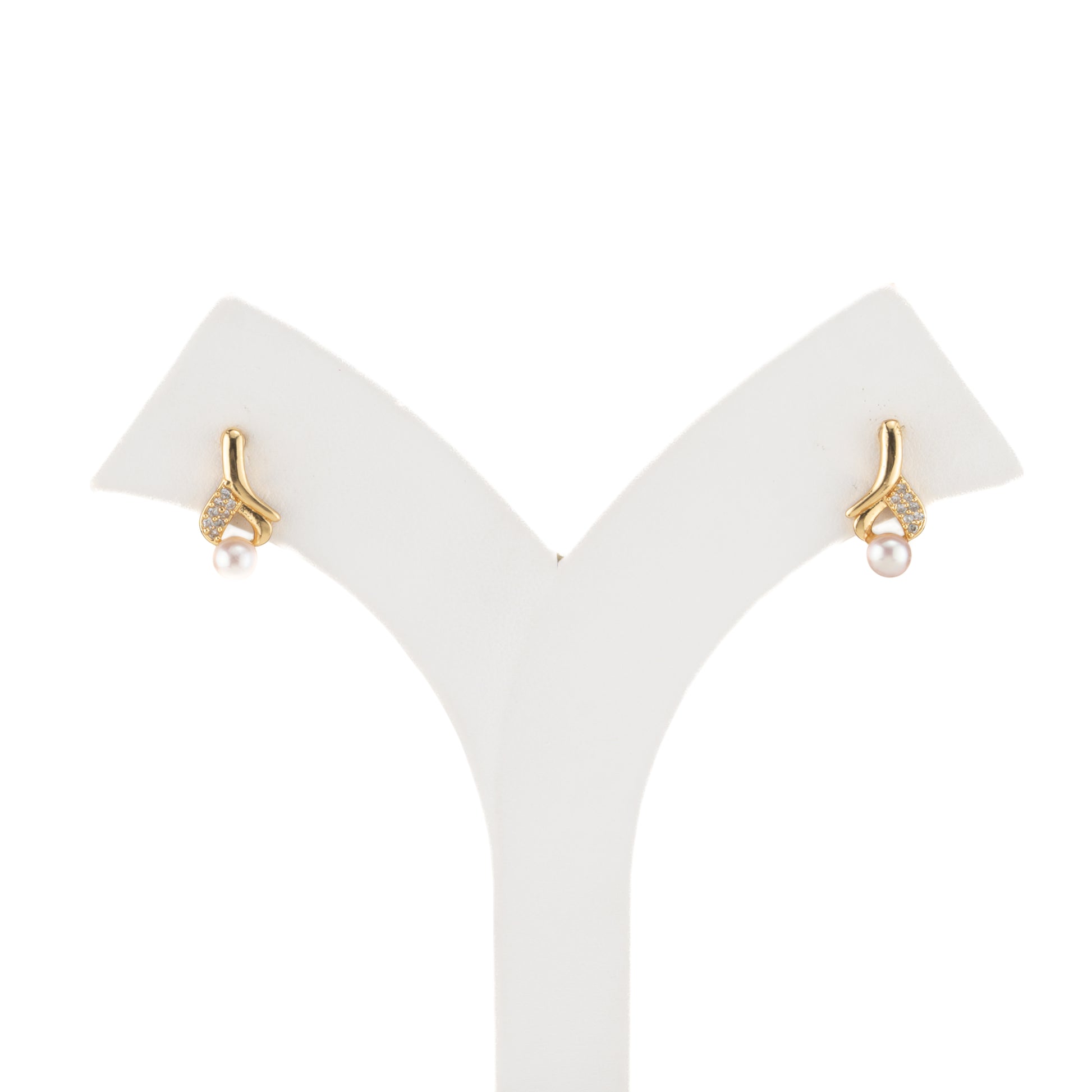Subtle White Stone Pink Drop Freshwater Pearl Earrings