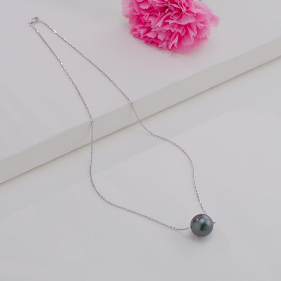13.0-14.0mm Black Tahitian Saltwater Pearl With 18K White Gold Chain - AAA Quality