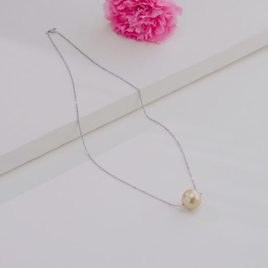 14.0-15.0mm Golden Round South Sea Pearl With 18K White Gold Chain - AAA Quality