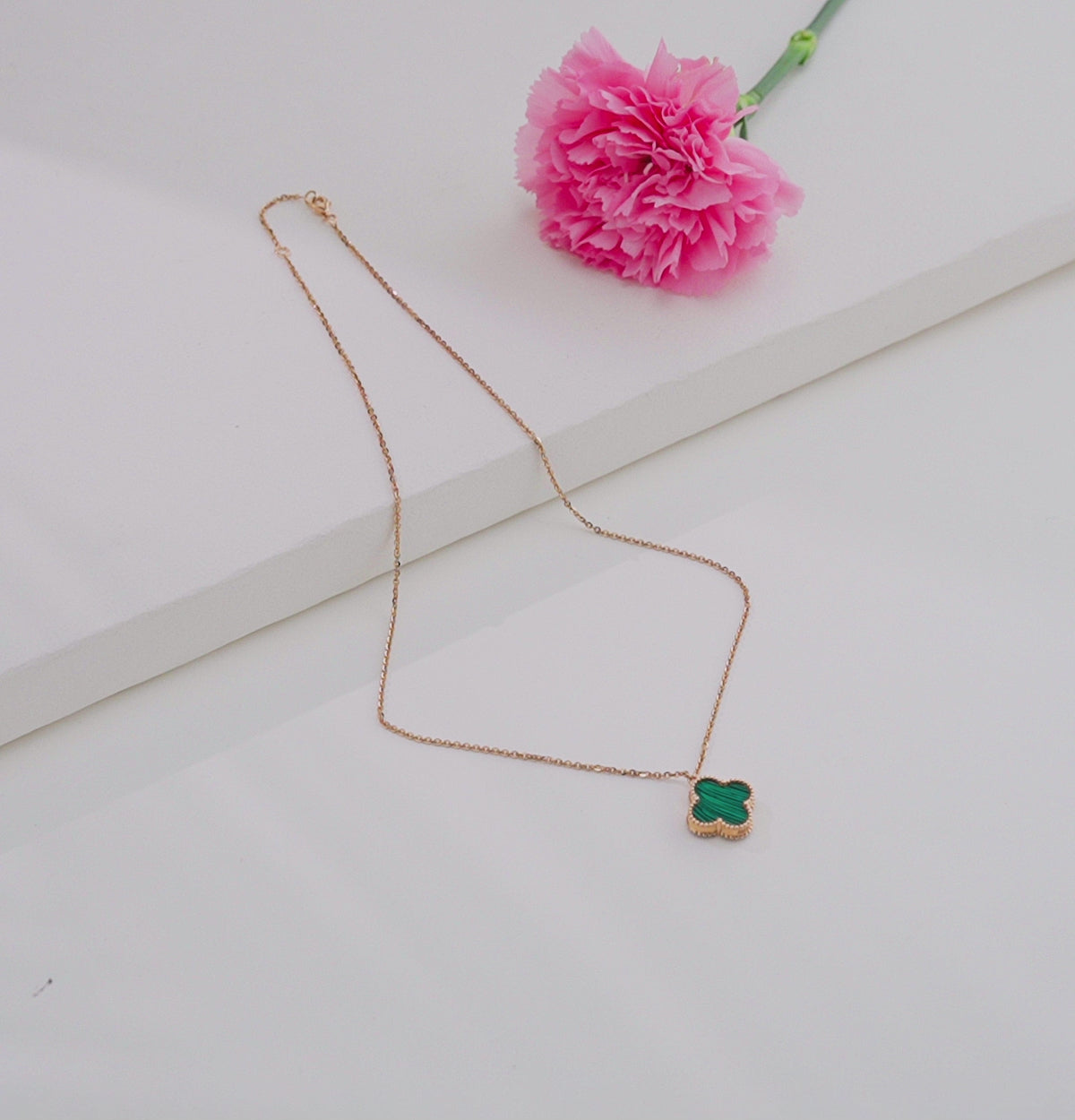 Malachite Clover Necklace with 18K Rose Gold Chain
