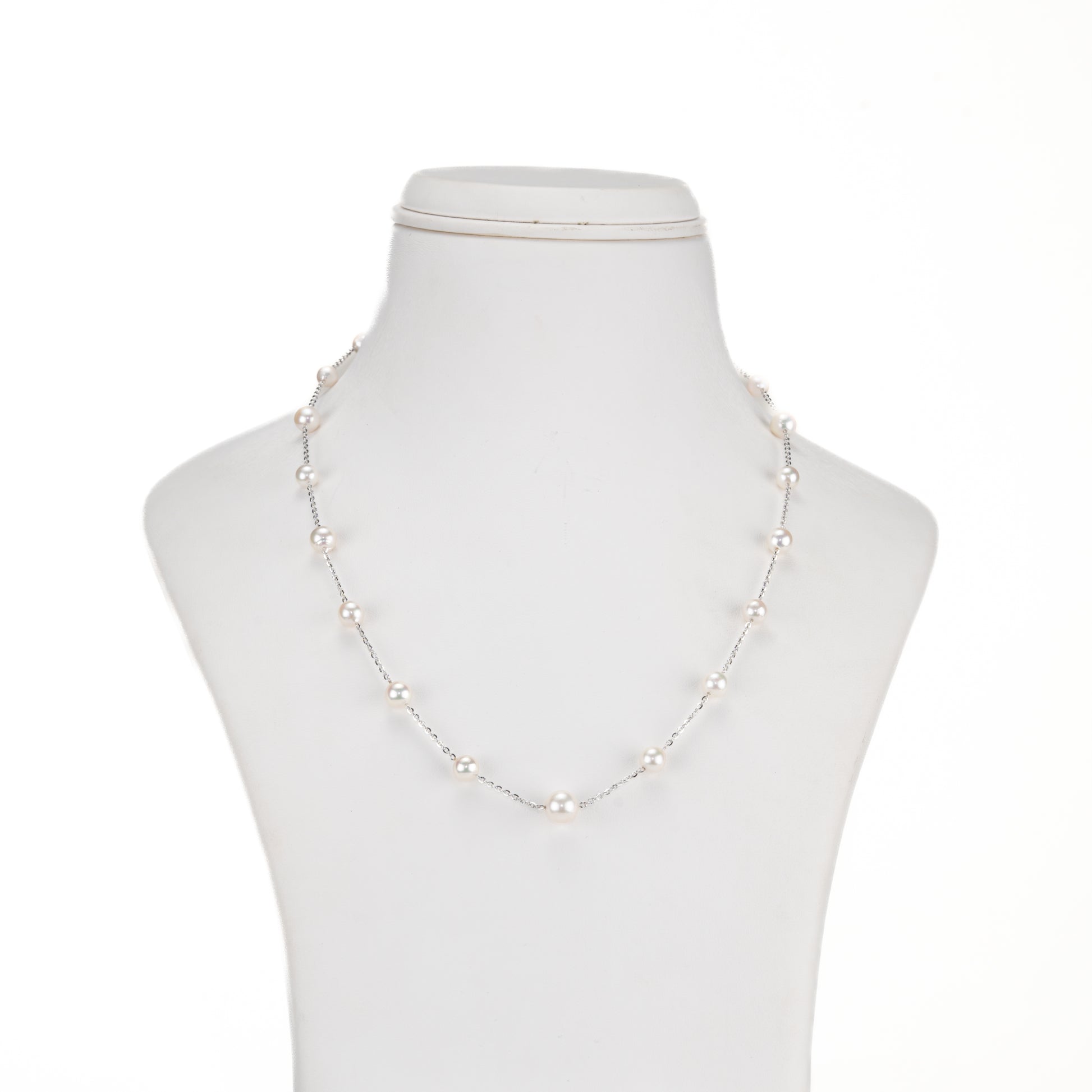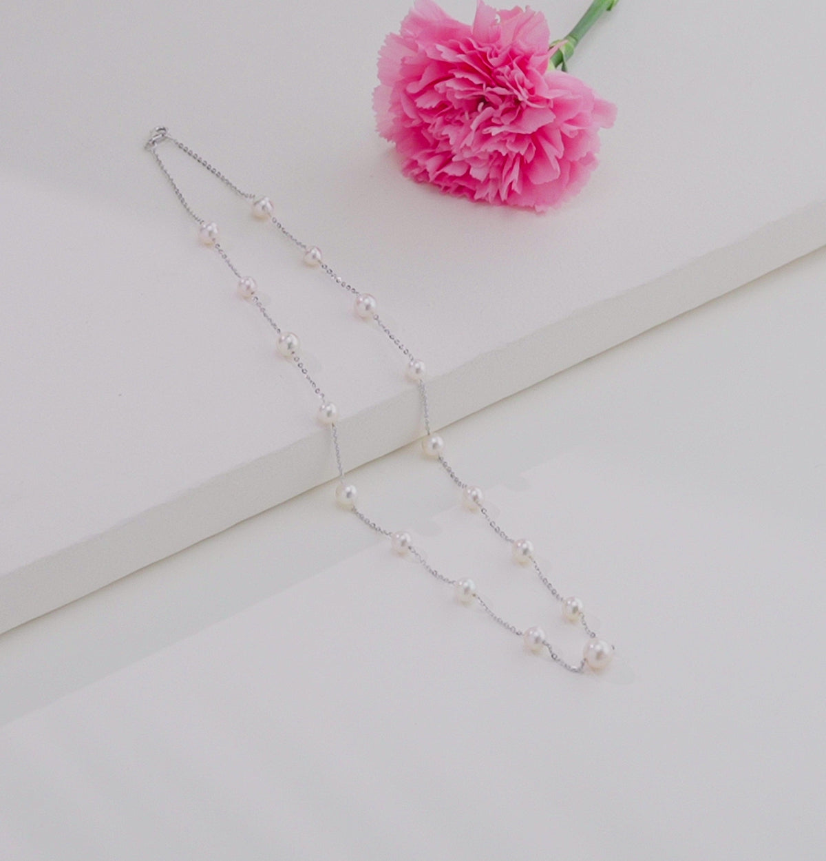 Set on a refined 18-inch 18K white gold chain weighing 2.338 grams, the cool metallic sheen complements the pearls’ natural brilliance, creating a graceful, contemporary elegance. The single-row design embodies minimalism with sophistication, making it a versatile piece for everyday refinement and special occasions alike.